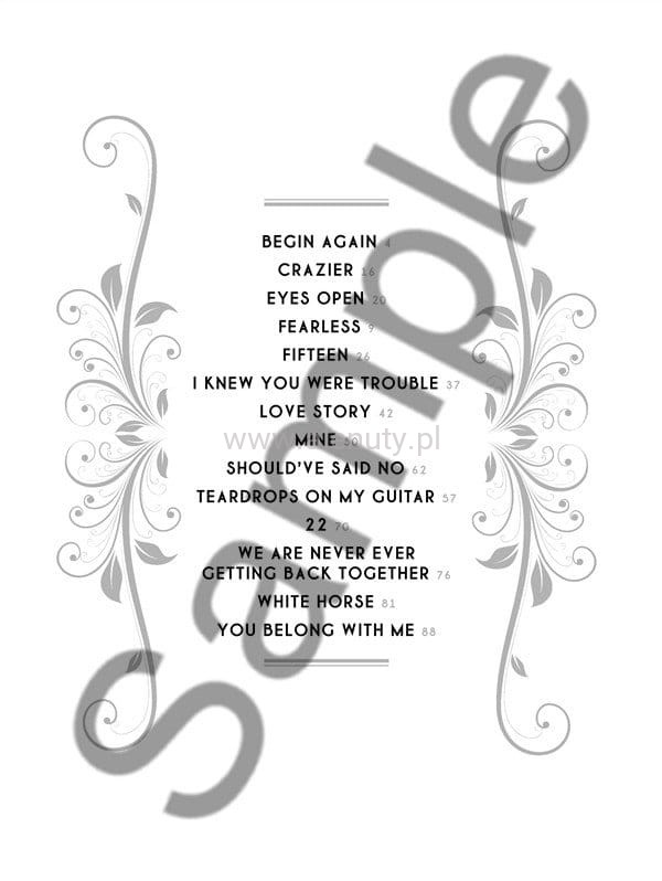 Wspaniała kolekcja 14 największych hitów amerykańskiej piosenkarki i autorki tekstów - Taylor Swift, w opracowaniu na fortepian, gitarę i wokal.