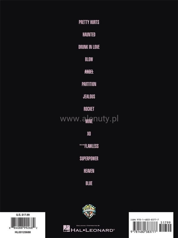 Publikacja zawiera 14 utworów z albumu Beyoncé z 2013 roku. Nuty na fortepian, gitarę i głos dla średnio-zaawansowanych. Wydania oznaczone jako PVG (Piano Vocal Guitar - Fortepian Melodia Gitara) zawierają zapis nutowy linii melodycznej, nuty na fortepian, akordy gitarowe oraz słowa do piosenek zamieszczonych w publikacji. Więcej o nutach PVG przeczytasz >>> w artykule