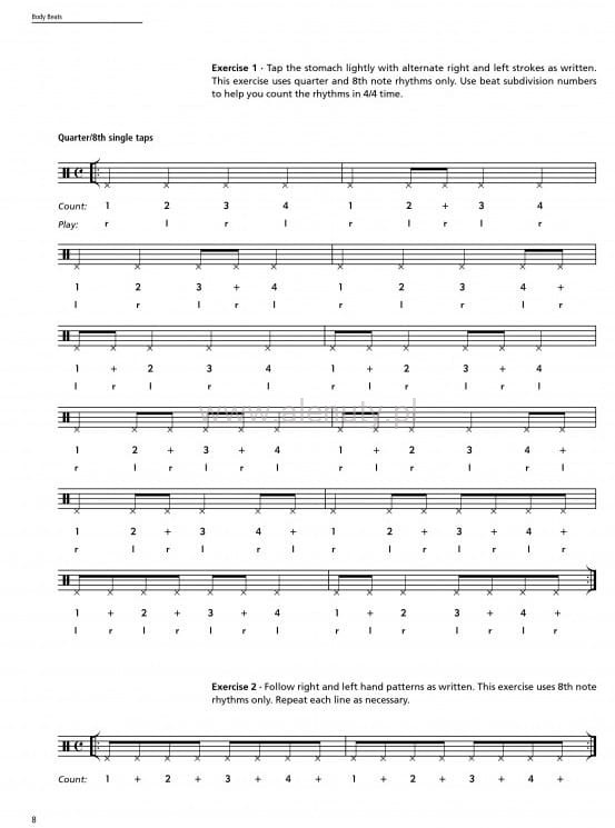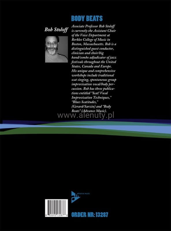 Body Beats - to pierwsza tego rodzaju publikacja!!! Ekscytujące i kompleksowe podejście do popularnej sztuki współczesnego bębnienia na ciele. Autor Bob Stoloff dociera do sedna podstawowych technik gry na bębnach przy użyciu swojej unikalnej metody Tap-Slap-N-Thump. Czytelna i przejrzyście wydana publikacja mieści w sobie wszystko, co musisz wiedzieć, od podstawowych wzorów dłoni po konkretne rytmy jazzowe, popowe, funkowe i latynoskie. Jeśli kochasz rytm, ta książka jest dla Ciebie!