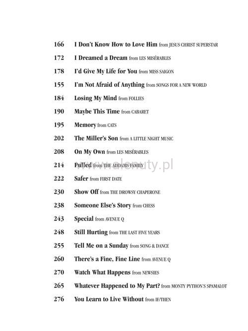 Nuty na fortepian, głos i gitarę (PVG) wybranych najpopularniejszych piosenek z musicali i filmów, w szczególności przeznaczone dla śpiewaków używających techniki belting. Wydania oznaczone jako PVG (Piano Vocal Guitar - Fortepian Melodia Gitara) zawierają zapis nutowy linii melodycznej, nuty na fortepian, akordy gitarowe oraz słowa do piosenek zamieszczonych w publikacji. Więcej o nutach PVG przeczytasz >>> w artykule