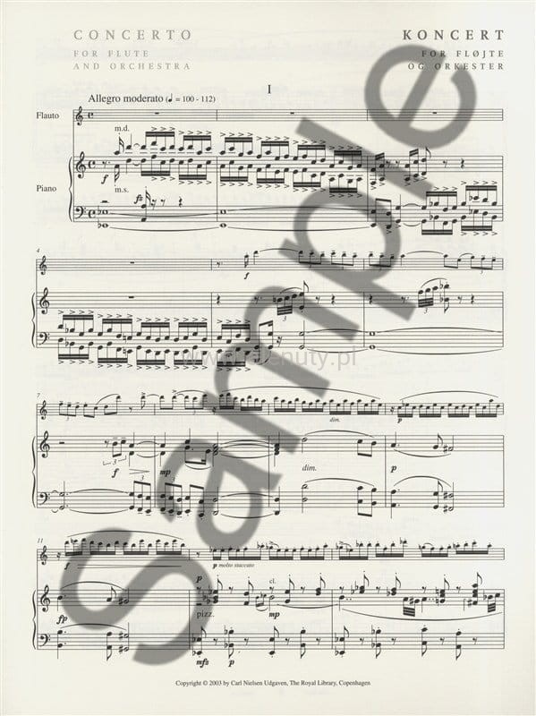Carl Nielsen: Concerto for Flute and Orchestra - nuty na flet poprzeczny i fortepian