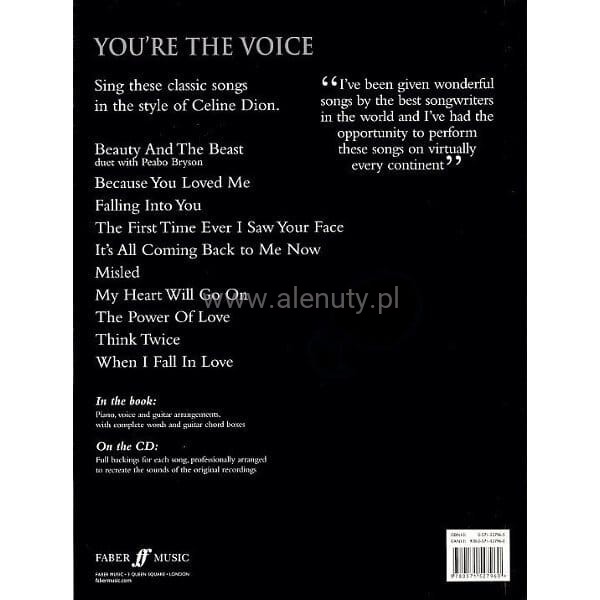 Celine Dion - You're The Voice - nuty na fortepian, głos i akordy gitarowe (+ płyta CD)