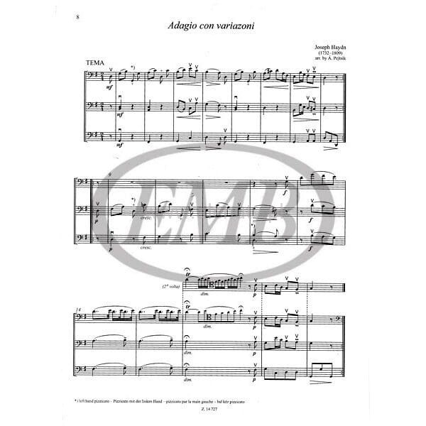 Pozycja z serii "Chamber Music for Violoncellos" tom 11, zawiera utwory z różnych okresów historii muzyki w opracowaniu na 3 wiolonczele. Znajdziemy tu między innymi XVIII-wieczne tańce węgierskie, wariacje Josepha Haydna czy słynne menuety Beethovena. Utwory przeznaczona są do wykonywania dla średniozaawansowanych wiolonczelistów.