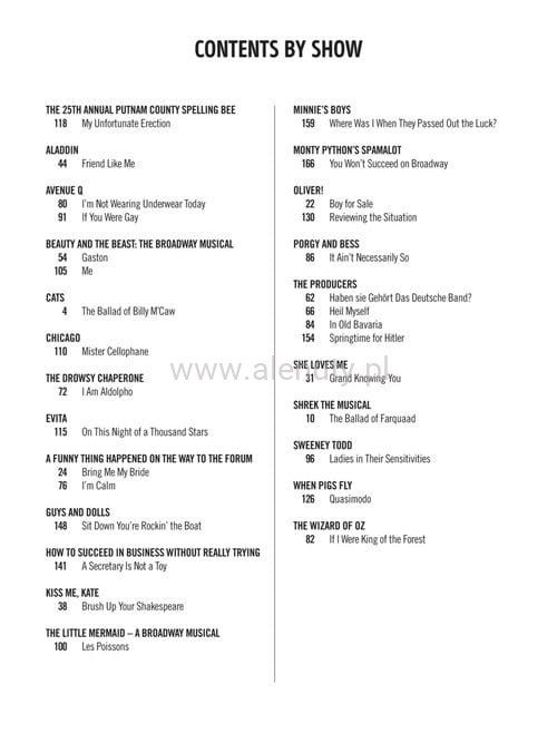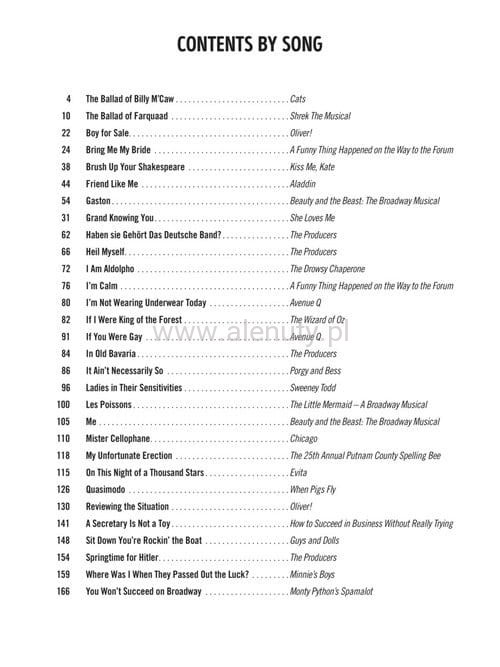 Nuty na fortepian, głos i gitarę (PVG) wybranych piosenek postaci męskich z musicali, teatru i filmów.