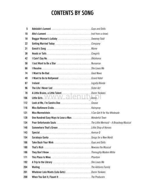 Nuty na fortepian, głos i gitarę (PVG) wybranych piosenek postaci żeńskich z musicali, teatru i filmów.