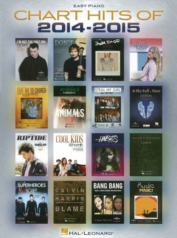 Pozycja z serii 'Easy Piano Folios' zawiera kolekcję 16 największych i najgorętszych hitów lat 2014 - 2015 zaaranżowanych na fortepian dla początkujących. Wszystkie utwory w standardowym opracowaniu nutowym z linią basu, akordami i tekstem.