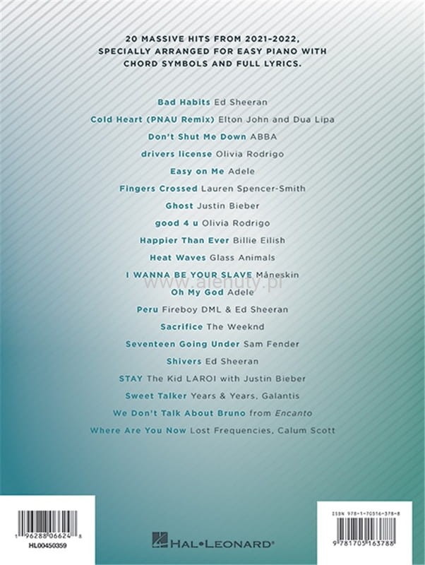 Tytuł: Chart Hits Of 2021-2022 (Easy Piano) - 20 massive singles