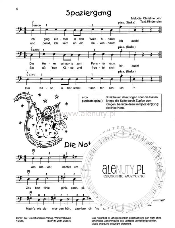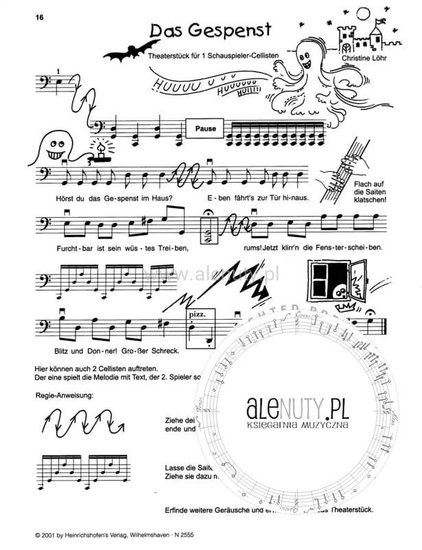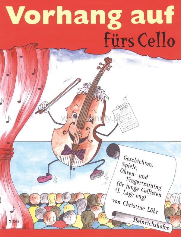 Pozycja 'Vorhang auf furs Cello' część 1, autorstwa Christine Lohr to zbiór opowiadań, gier i ćwiczeń rozwijających słuch i wspomagających pracę palców, przeznaczona dla początkujących wiolonczelistów.