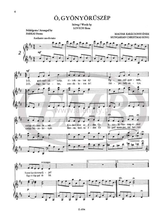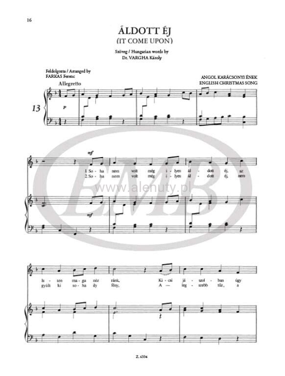 Publikacja zawiera węgierskie, angielskie, niemieckie, francuskie, austriackie i amerykańskie kolędy na głos i fortepian w aranżacji Ferenca Farkasa. Nuty przeznaczone dla początkujących muzyków.