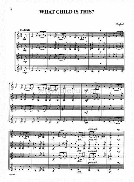 Ten zbiór 15 świątecznych piosenek, kolęd i utworów instrumentalnych. Mogą być odtwarzanych harmonijnie na dowolnej liczbie lub kombinacji instrumentów. Instrumenty dęte drewniane, instrumenty dęte blaszane, instrumenty smyczkowe i perkusja młotkowa mogą się wspólnie grać w różnego rodzaju zespołach mieszanych. Utwory te również znakomitymi propozycjami na przesłuchania, nauki czytania czytania a vista i bądź nauki gry zespołowej. Opracowanie na róg (waltornię), nuty dla średnio-zaawansowanych.
