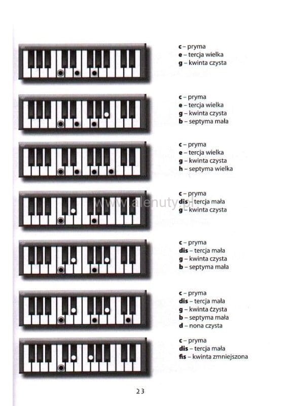 - rozpis akordów w kilku pozycjach oraz opis składników akordów