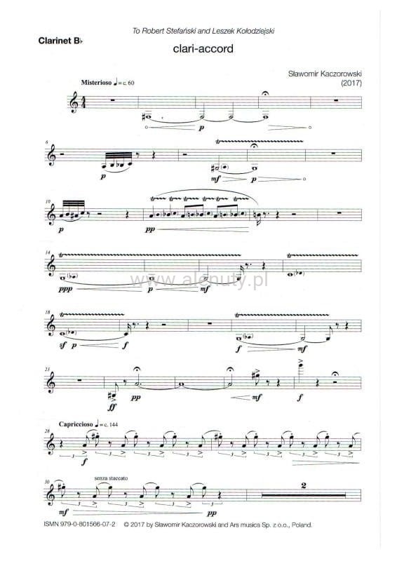 Kompozycja clari-accord, to muzyczny dialog pomiędzy klarnetem, a akordeonem. Głosy przenikają się wzajemnie, z kolei w innych fragmentach jeden z dwóch instrumentów przejmuje prymat emocjonalny. Wirtuozeria, to podstawowy walor, który stanowi o atrakcyjności utworu – zarówno dla wykonawców jak i słuchaczy.