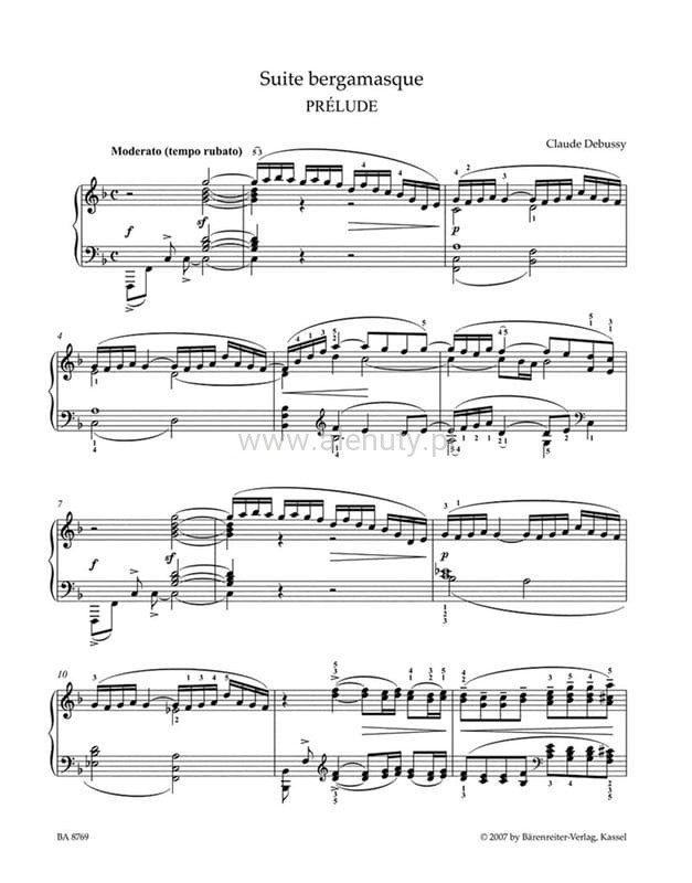 Publikacja zawiera „Suite bergamasque” Debussyego ze słynną „Claire de la lune”. Po raz pierwszy została opublikowana w 1905 roku, jednak powstała ona na początku lat 90. XIX wieku. Nuty na fortepian dla średnio-zaawansowanych.