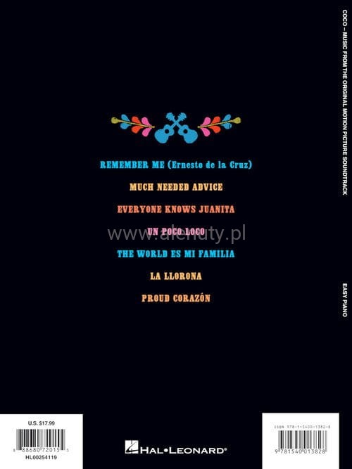 Nuty na fortepian siedmiu piosenek z nagrodzonego Oscarem 2018 filmu animowanego 'Coco' w prostym opracowaniu.