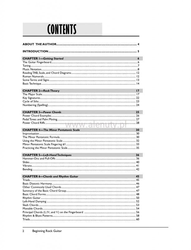 Podręcznik z serii "Complete Rock Guitar Method" idealny dla początkujących gitarzystów, którzy pragną poszerzać swoją wiedzę dotyczącą gry rocka. Obejmuje takie zagadnienia jak podstawowa teoria rocka, istotne akordy, techniki, improwizacja z wykorzystaniem skali pentatonicznej i inne. Dodatkowo zawiera również zagrywki takich sław jak Chuck Berry, Van Halen, Led Zeppelin i inni. Wszystkie utwory i ćwiczenia w zapisie nutowym oraz tabulaturowym. Do książki dołączona jest płyta DVD.