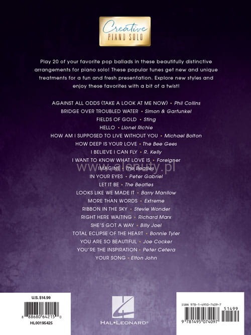 Nuty na fortepian zbioru 20 kreatywnych aranżacji ballad popowych, o dosć wysokim poziomie trudności, odpowiednich dla średnio-zaawansowanych i zaawansowanych pianistów.