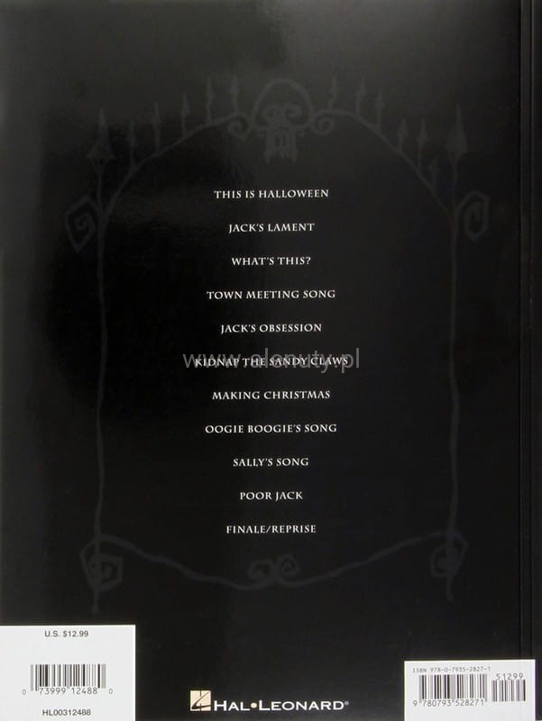 Nuty na fortepian, głos i gitarę (symbole akordów) zbioru piosenek z filmu "Miasteczko Halloween" (1993), autorstwa Danny'ego Elfman'a, przeznaczone dla średnio-zaawansowanych. Wydania oznaczone jako PVG (Piano Vocal Guitar - Fortepian Melodia Gitara) zawierają zapis nutowy linii melodycznej, nuty na fortepian, akordy gitarowe oraz słowa do piosenek zamieszczonych w publikacji. Więcej o nutach PVG przeczytasz >>> w artykule
