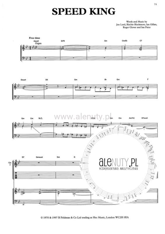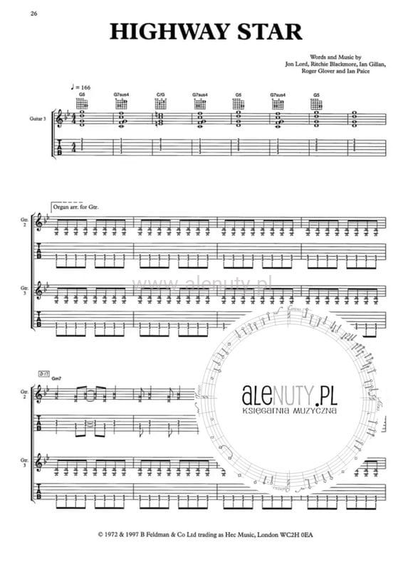 Kolekcja 12 największych hitów brytyjskiego zespołu rokowego Deep Purple w zapisie nutowym oraz tabulaturowym.