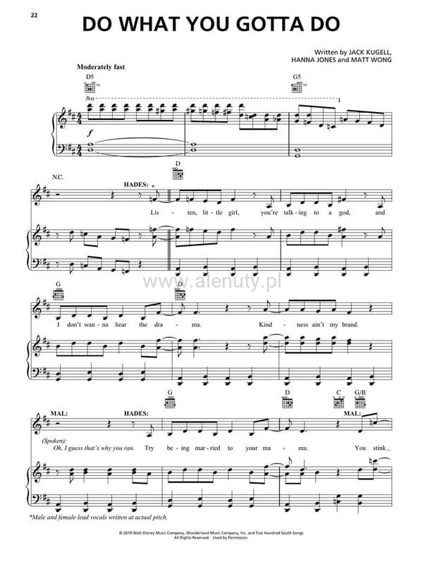 Mroczna siła zagraża mieszkańcom Auradon, a Mal i VK muszą stoczyć prawdziwie epicką bitwę, w walce o dalsze losy miasta! Publikacja mieści w sobie piosenki z ostatniej części trylogii Disneya 2019. Znajdziesz tu osiem piosenek w łatwych opracowaniach na fortepian, gitarę i głos.