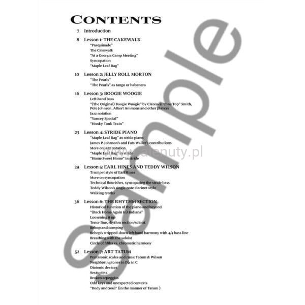 Swoją podróż rozpoczyna od muzki pre-ragtime i Louisa Moreau Gottschalka oraz ragtime Scotta Joplina, a kończy na zaawansowanych typach skali Mikołaja Slonimsky i muzyką McCoy Tynera. Pokazuje i omawia zdumiewającą różnorodność improwizacji fortepianowej jazzu i ludzi oraz techniki, które ukształtowały jego ewolucję.