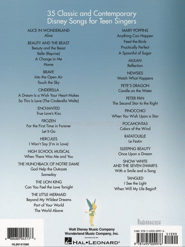 Kolekcja 35 klasycznych i współczesnych piosenek pochodzących z bajek i filmów Disneya, specjalnie zaaranżowanych dla nastoletnich wokalistek na głos z akompaniamentem fortepianu.