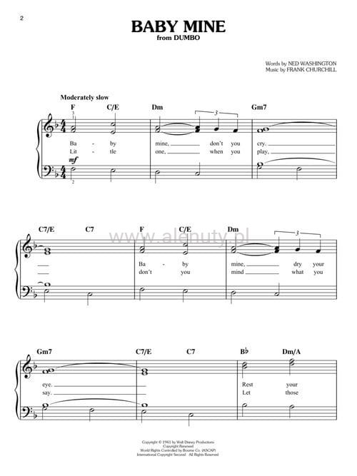 Nuty na fortepian (pianino) 20 najpopularniejszych piosenek z filmów Disneya opowiadających o miłości. Jest to zbiór nut w prostym opracowaniu, odpowiednim dla uczniów młodszych klas szkół muzycznych.