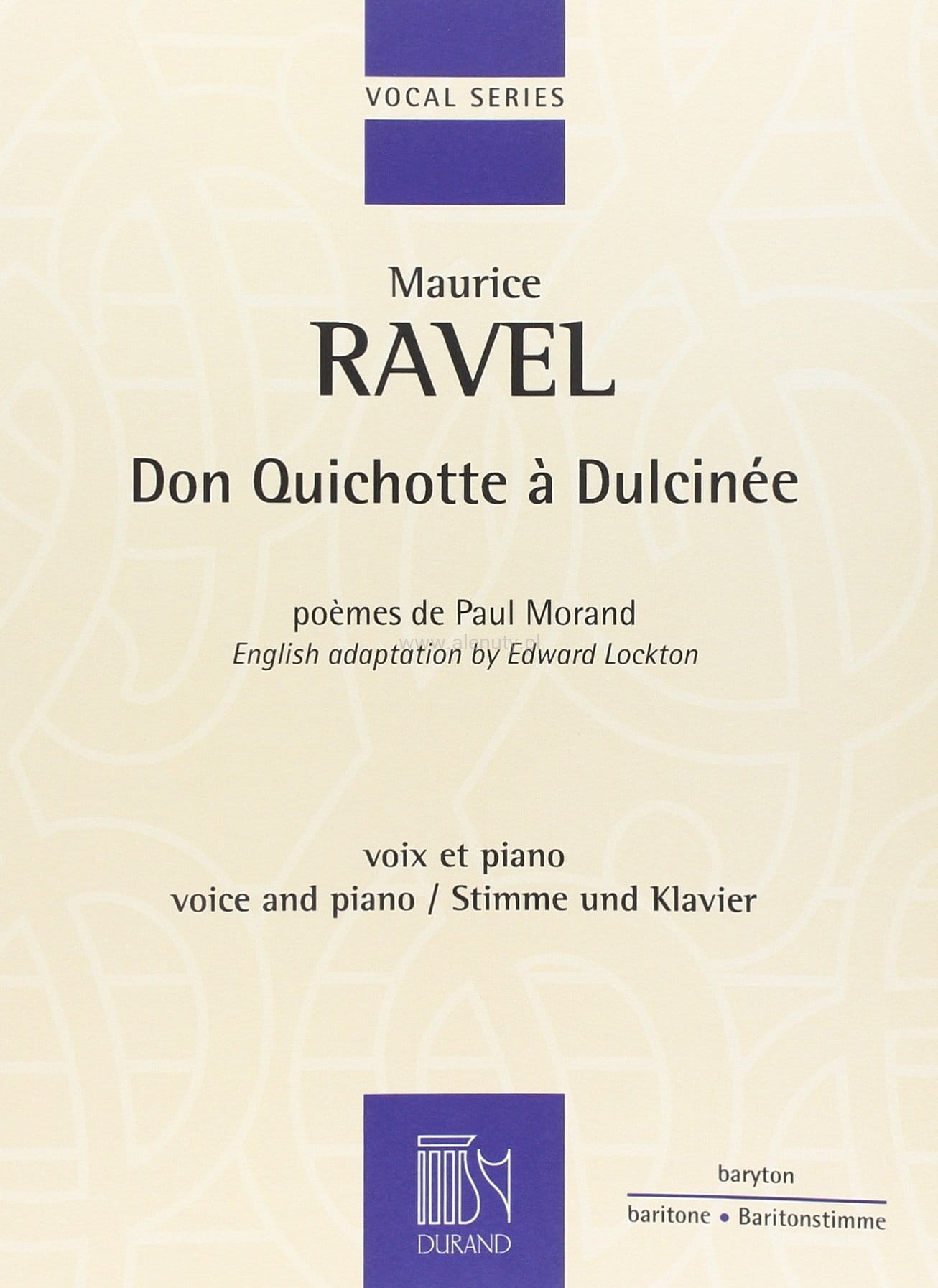 Don Quichotte A Dulcinee - Maurice Ravel - nuty na baryton z fortepianem
