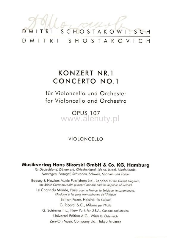 Tytuł: Dymitr Szostakowicz: Concerto No. 1 op. 107 for Violoncello and Orchestra