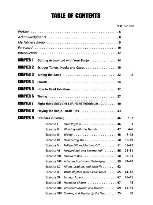 'Earl Scruggs And The Five String Banjo' to poprawione i rozszerzone wydanie bezapelacyjnie jednej z najlepszych szkół gry na banjo. Earl Scruggs - autor i nauczyciel, jeden z najlepszych, krok po kroku wprowadzi cię w świat banjo. Książka uczy czytania nut, tabulatury i akordów, technik prawej i lewej ręki, niezwykłych strojów banjo, budowy i historii instrumentu, zawiera wiele ćwiczeń i piosenek.