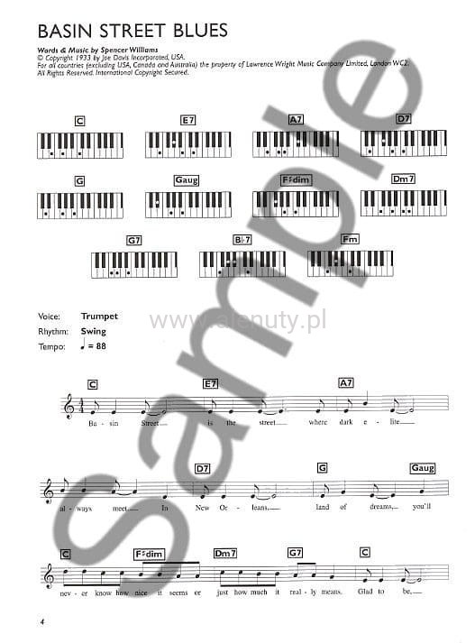 Pozycja z serii "Easiest Keyboard Collection " to wspaniała kolekcja 22 najsławniejszych bluesowych standardów w łatwym opracowaniu na keyboard i wszystkie elektroniczne instrumenty klawiszowe. Idealna pozycja dla początkujących muzyków, każda piosenka jest rozpisana w prostym zapisie nutowym wraz z akordami z diagramami, pełnym tekstem i sugestią rytmu i tempa.