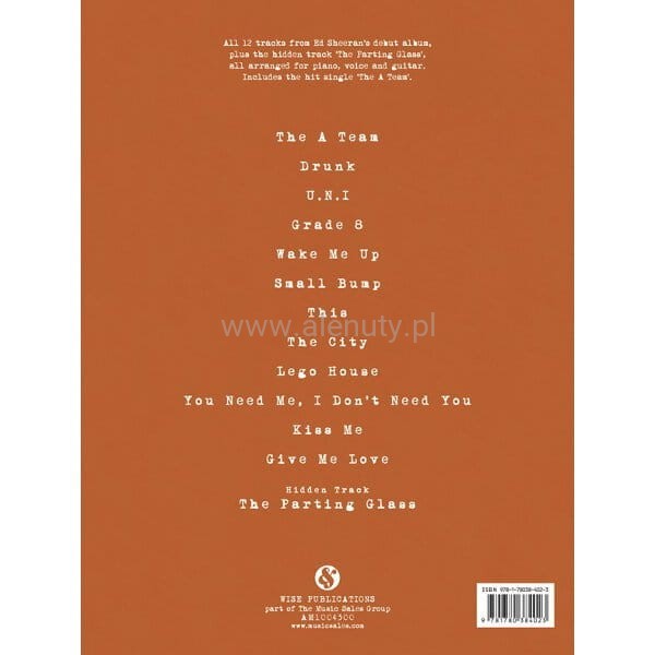 Wszystkie 12 piosenek z debiutanckiego albumu Ed Sheeran zatytułowanego "+" (Plus) wraz z singlem "The A Team" oraz dodatkową piosenką "The Parting Glass". Nuty dla średnio-zaawansowanych w aranżacji na fortepian z linią melodyczną oraz akordy gitarowe i teksty piosenek.