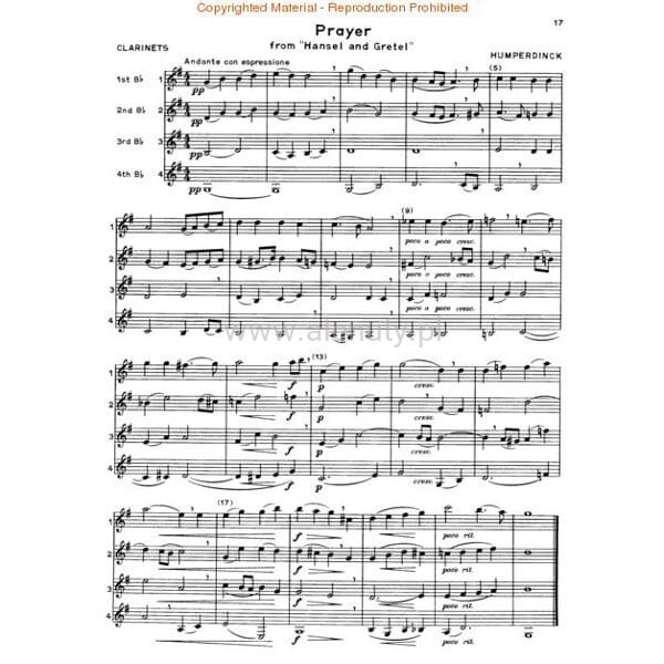 Kolekcja krótkich opracowań słynnych klasycznych utworów Mozarta, Bacha, Schumanna, Haydna i innych, w opracowaniu Himiego Voxmana na cztery klarnety B, dla średnio-zaawansowanych wykonawców.