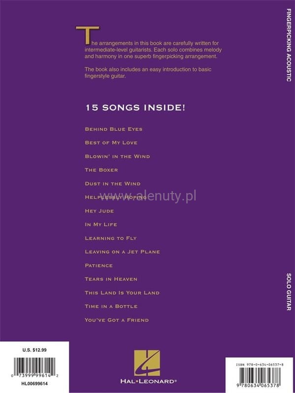 Fingerpicking Acoustic - 15 znanych piosenek - nuty na gitarę akustyczną + tabulatura