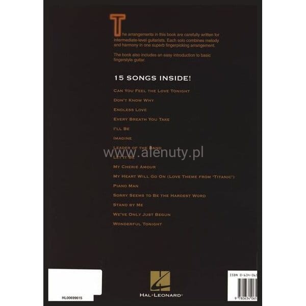 Publikacja ta jest starannie przygotowana dla średniozaawansowanych gitarzystów, zawiera standardowy zapis nutowy oraz tabulaturowy na gitarę solo. Każdy z 15 utworów łączy w sobie melodię i harmonię zaaranżowaną specjalnie w stylu "fingerpicking". Książka zawiera też łatwe wprowadzenie do gry w stylu "fingerstyle".