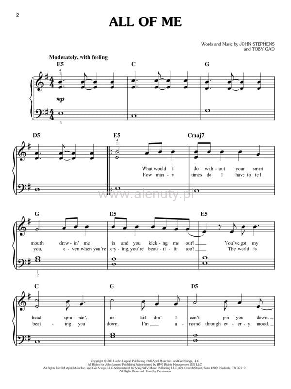 50 popularnych hitów zaaranżowanych na fortepian. Nuty dla poczatkujących.