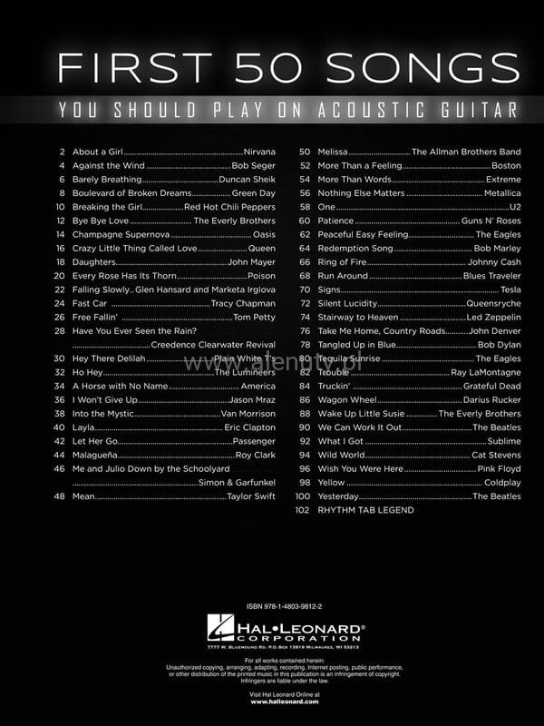 First 50 Songs You Should Play on Acoustic Guitar - śpiewnik z akordami i słowami piosenek na gitarę akustyczną
