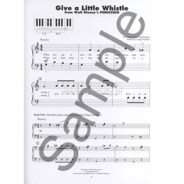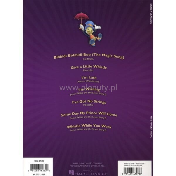 Opracowanie zawiera 7 ulubionych utworów dziecięcych pochodzących z bajek Disneya. Prosty zapis nutowy sprawia, że materiał świetnie nadaje się do pracy z najmłodszymi dziećmi.