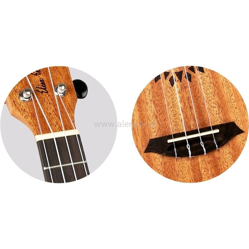 Doskonałym dopełnieniem ogólnego wyglądu jest mostek, który według wskazówek Elise został zaokrąglony. Siodełka tego ukulele są ustawione w taki sposób, że nigdy nie będziesz musiał martwić się o intonację.
