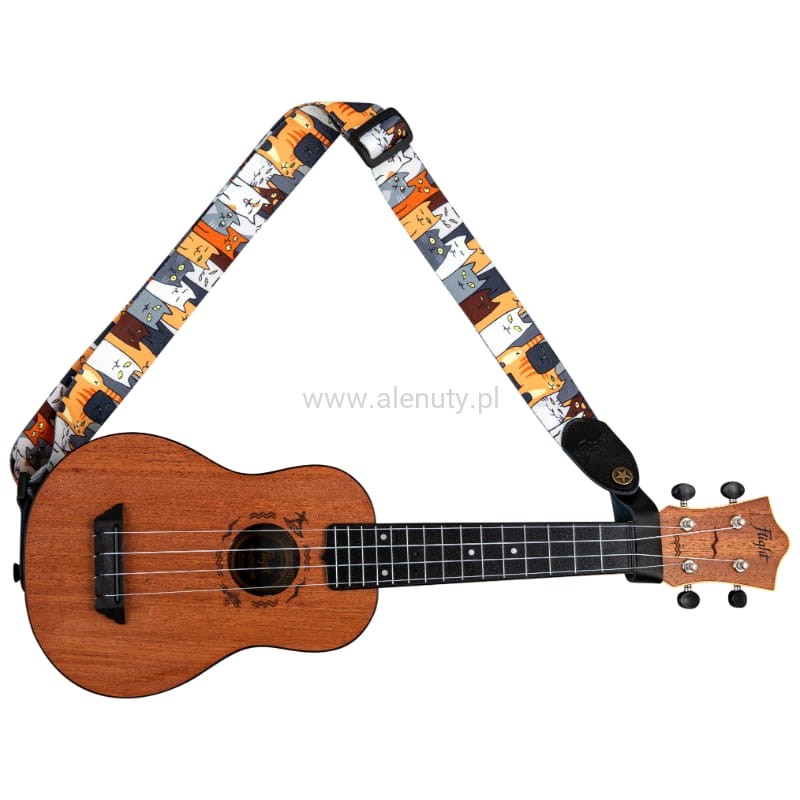 Pięknie zdobiony, dobrze wykonany, regulowany pasek do ukulele.