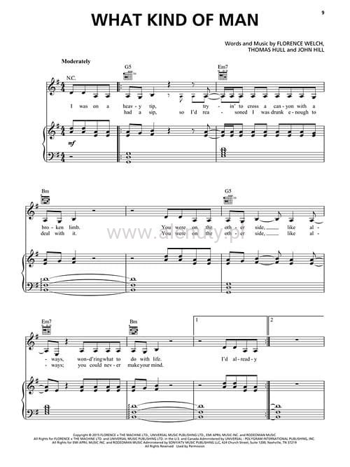 Kolekcja 11 utworów z najnowszego albumu z 2015 roku brytyjskiej wokalistki Florence oraz 3 bonusowe piosenki. Wszystkie utwory w opracowaniu nutowym na fortepian, z linią melodyczną i tekstem dla wokalistów oraz akordami dla gitarzystów.