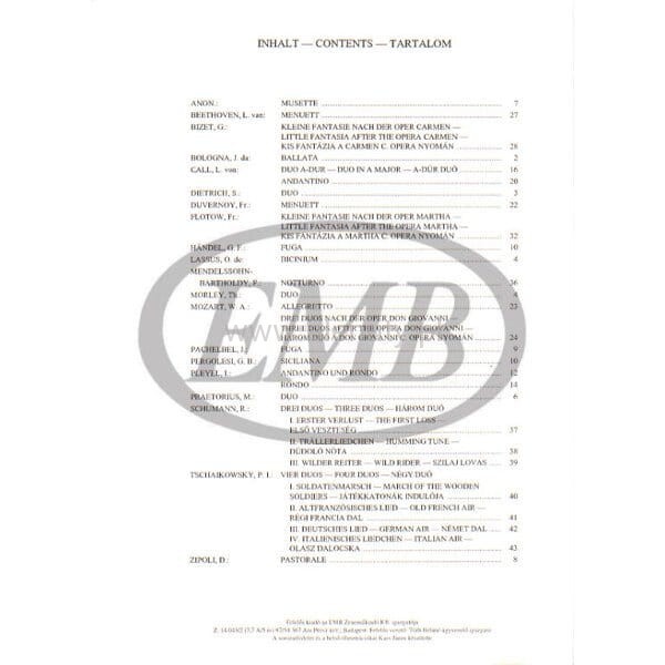 Pozycja z serii "Music for Beginners" część II, zawiera kolekcję utworów na duet fletów dla początkujących.