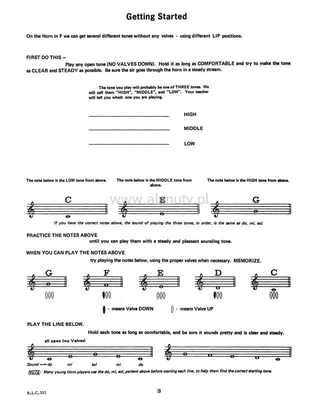 Ćwiczenia i etiudy melodyczne na waltornię (róg): Studies and Melodious Etudes for French Horn Level 1 Elementary