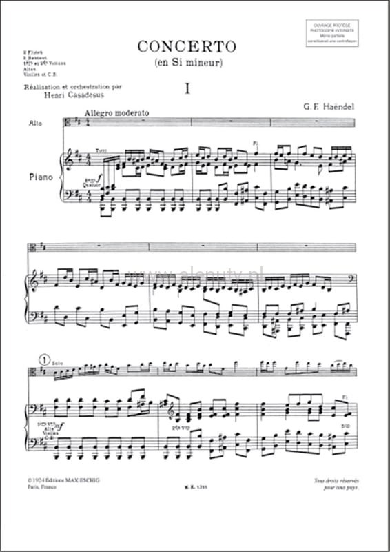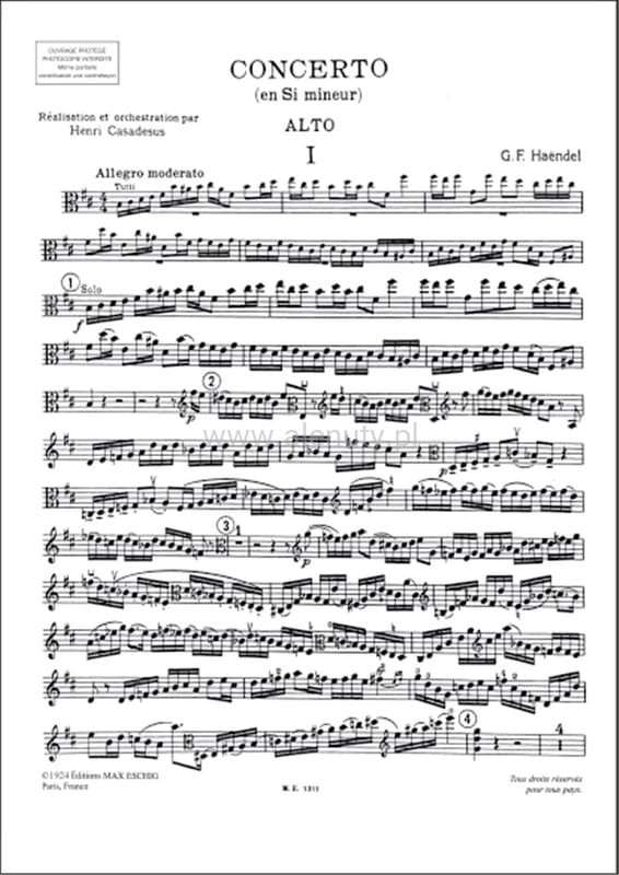 Georg Friedrich Handel: Concerto en si mineur pour alto avec accompagnement d'orchestre - koncert altówkowy h-moll - nuty na altówkę i fortepian