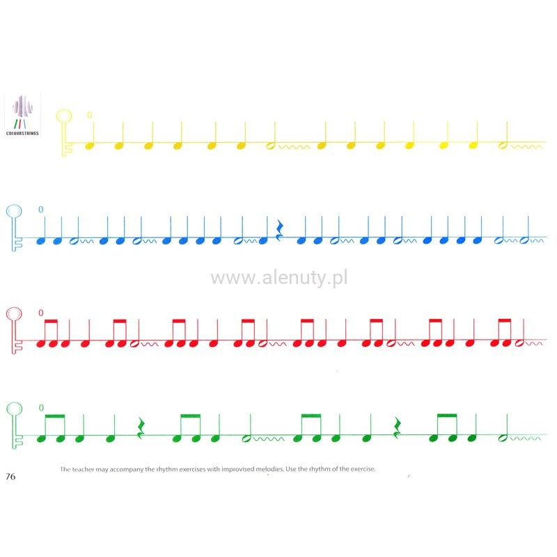 Szkoła na skrzypce Colourstrings zmienia naukę w zabawę i przynosi niesamowite rezultaty. Jej autorem jest profesor Géza Ellák Jenő Szilvay - węgierski skrzypek, nauczyciel i dyrygent. Jest bratem wiolonczelisty Csaby Szilvay i ojcem skrzypaczki Réki Szilvay. Wraz ze swoim bratem Csabą Szilvayem założył w 1972 roku orkiestrę młodzieżową Helsinki Strings. Colourstrings to kreatywna metoda angażująca wiele zmysłów. Za pomocą zabaw, symboli, kolorów i obrazów dziecko poznaje skomplikowane pojęcia. Śpiewanie, słuchanie, granie, czytanie i rozumienie są w colourstrings nieodłączne. Metoda kładzie duży nacisk na kształtowanie słuchu wewnętrznego oraz granie z nut. Jej celem jest, aby dziecko "słyszało wewnątrz" następny dźwięk jeszcze przed jego zagraniem. Widzieć i słyszeć idzie w parze. W ten sposób nauka jest głębsza i trwalsza. To połączenie dobrej zabawy z równorzędnym kształceniem słuchu, melodyki i rytmu. Nauczyciele korzystający z metody Colourstrings od początku wspierają uczniów i rodziców w stworzeniu dobrych nawyków przydatnych później w nauce. Publikacja stanowi część pierwszą, dla początkujących uczniów.