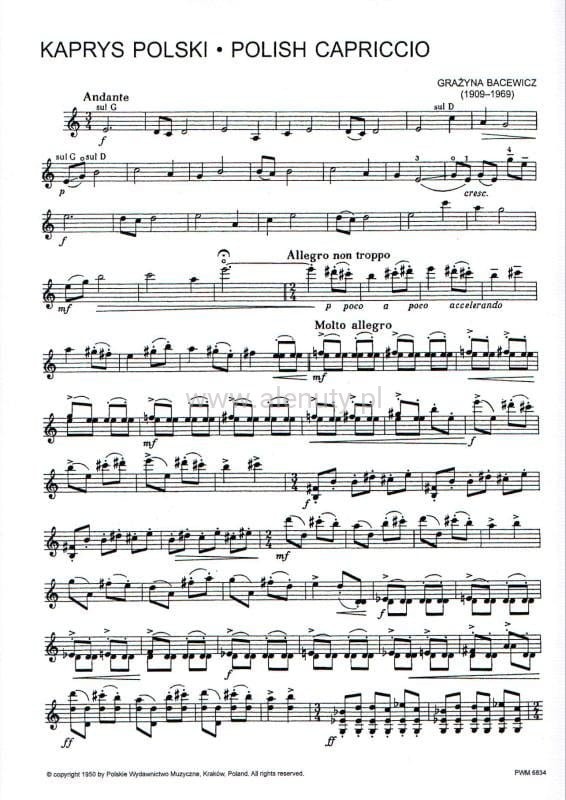 Grażyna Bacewicz: Kaprys polski na skrzypce solo - nuty na skrzypce