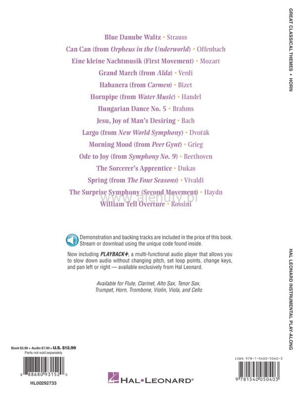 Kolekcja 15 ponadczasowych, klasycznych utworów w aranżacjach idealnych dla początkujących instrumentalistów. W tym tomie znajdziesz dzieła znanych kompozytorów w opracowaniu na waltornię (róg). Książka zawiera kod dostępu do materiałów online, które pozwolą Ci dokładnie wsłuchać się w brzmienie instrumentu, oraz grać razem z dostępnymi online podkładami.