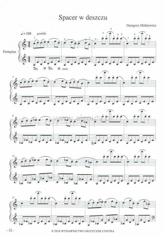 Kolekcja 7 utworów - różnorodnych i dalekich od obowiązującego repertuaru - autorstwa Grzegorza Miśkiewicza, na fortepian, stworzonych dla średnio-zaawansowanych wykonawców - 3-4 rok nauki gry na instrumencie.