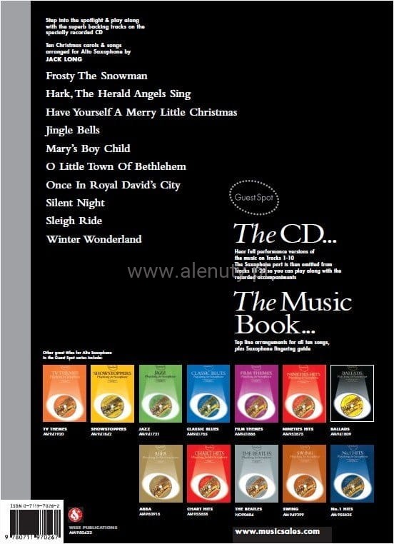 Pozycja z serii "Guest Spot" zawiera 11 najbardziej znanych świątecznych utworów w opracowaniu na saksofon altowy. Wszystkie utwory w zapisie nutowym. Do książki dołączona jest płyta CD z podkładami (backing tracks).