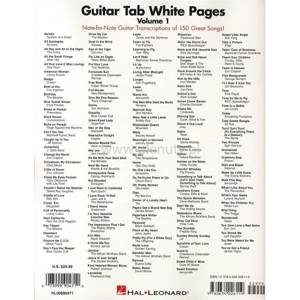 Guitar Tab White Pages 1 - śpiewnik 150 przebojów gitarowych - nuty, tabulatura, akordy, tekst