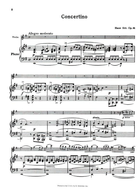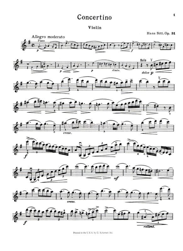 Hans Sitt był czeskim skrzypkiem, altowiolistą, pedagogiem i kompozytorem. Za życia uważany był za jednego z czołowych nauczycieli gry na skrzypcach. Opracowanie zawiera nuty Concertino e-moll na skrzypce i fortepian, dla średnio-zaawansowanych.
